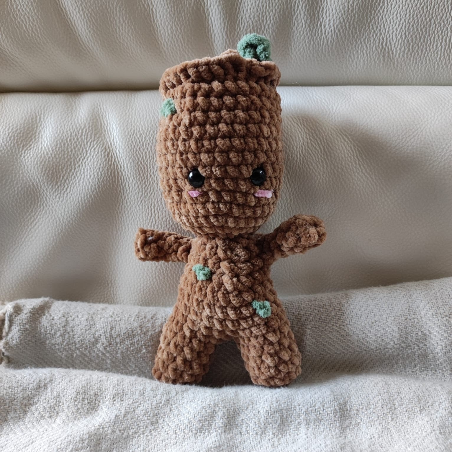 Avec ses petite feuilles et son air espiègle, il est un compagnon irrésistible. Sa taille permet à votre enfant de l'emporter partout pour des câlins ou des jeux et sa texture toute douce en fait un compagnon idéal.